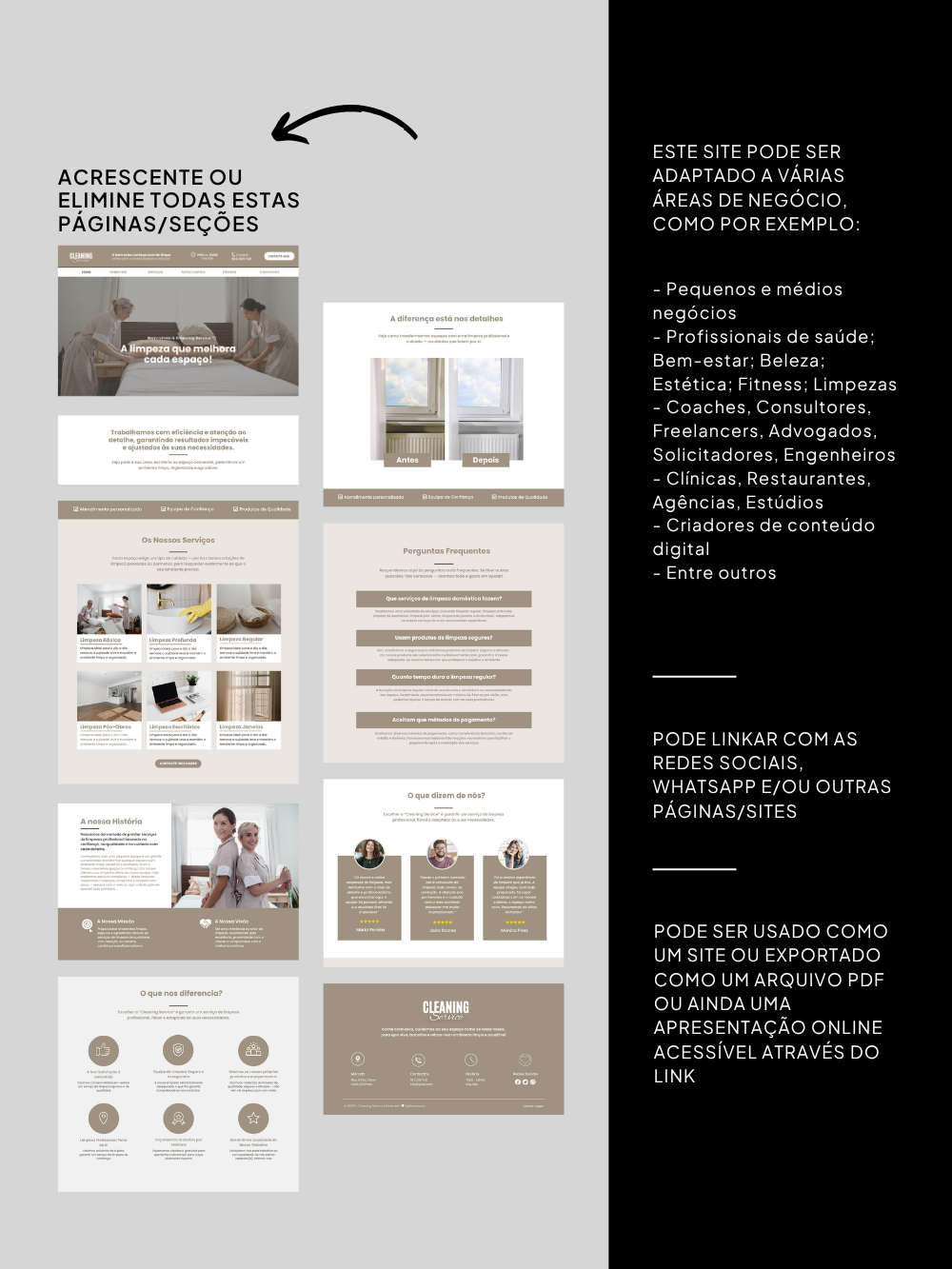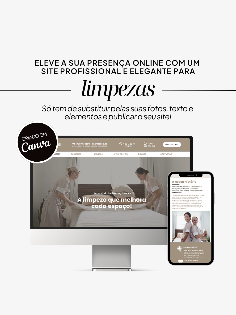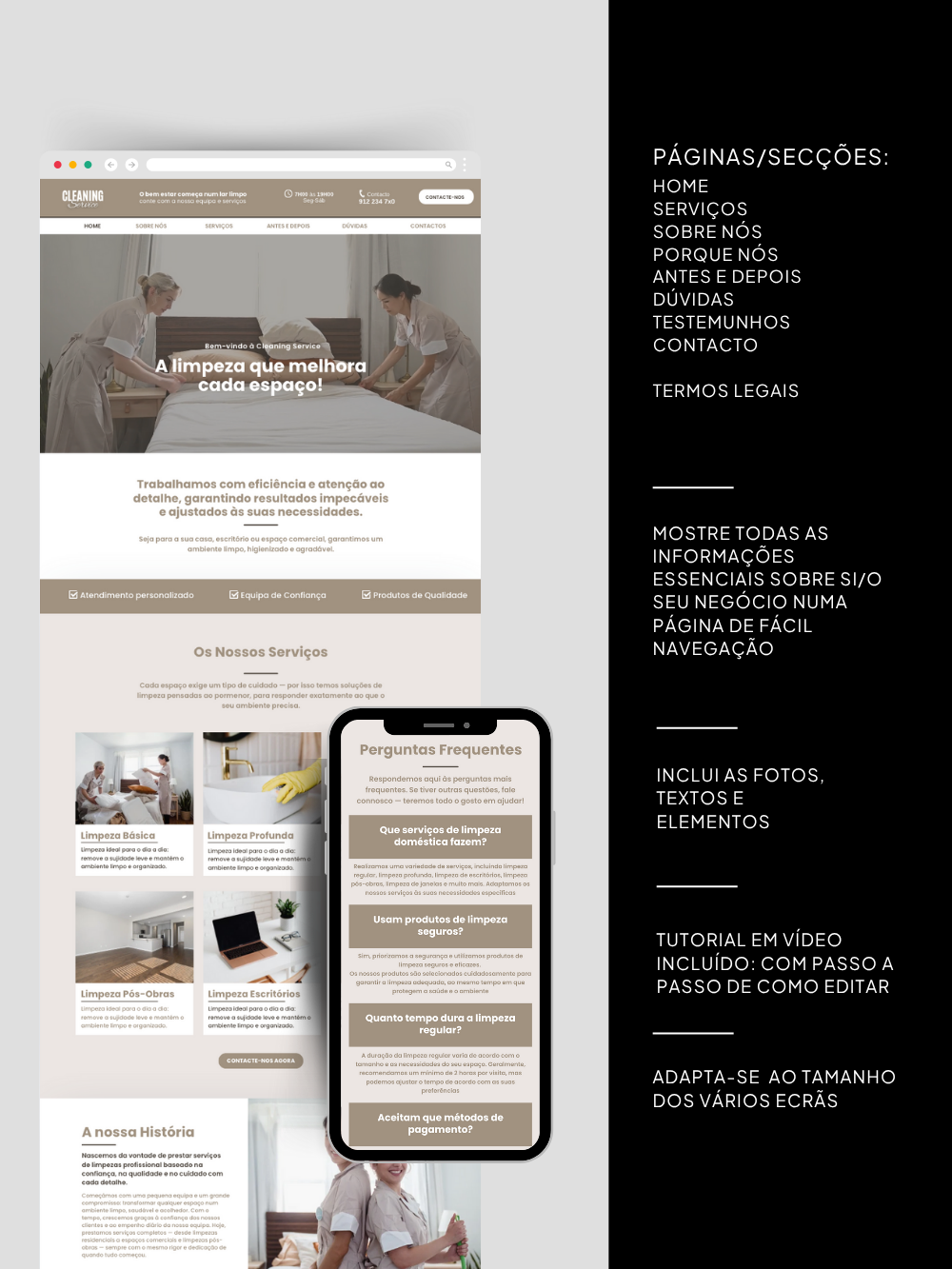 Tem um serviço de limpezas? Destaque-se online com este site para limpezas, profissional e elegante e atraia novos clientes!
