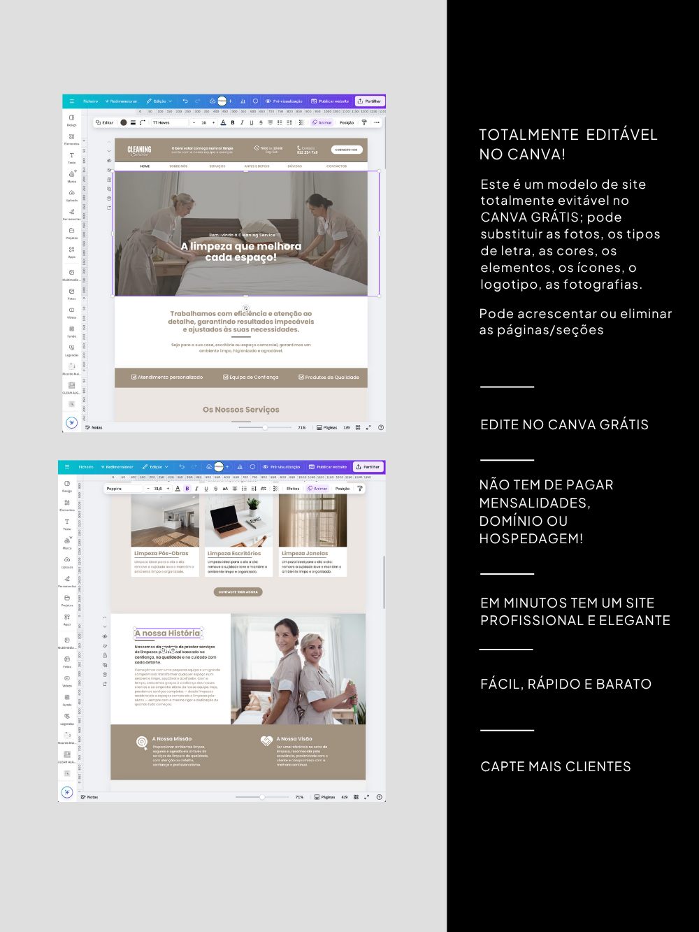 ✔ Site editável e personalizável no Canva: não precisa saber design nem programação